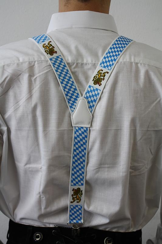 Elastischer und Größen verstellbarer Trachten Hosenträger zum Clipsen mit Bayern Muster