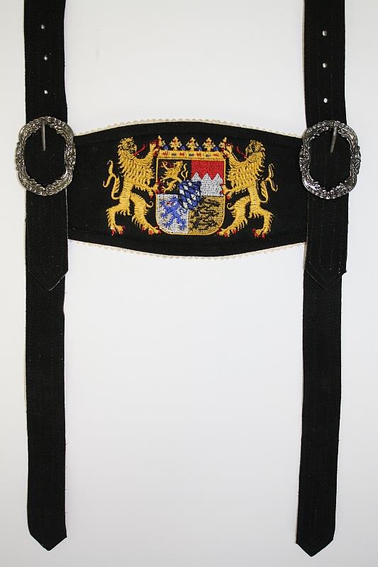 Auffällige Hosenträger, in der Farbe schwarz, mit auffälliger Bayernstickerei!