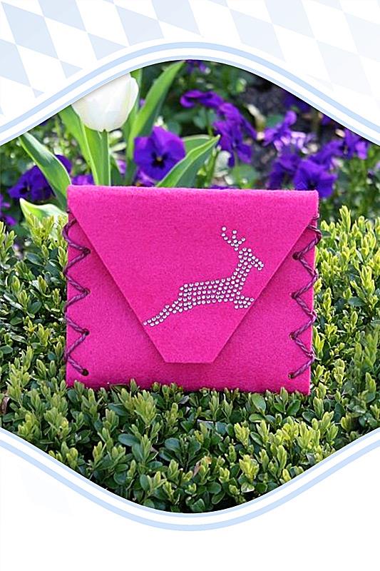 Handgearbeitete Dirndltasche Portemonnaie/Clutch in der Farbe pink.