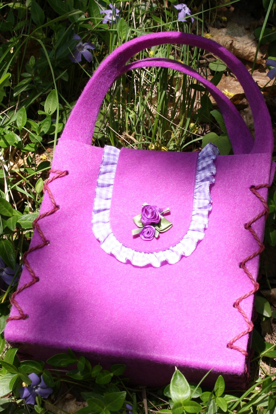 Handgearbeitete Filz Dirndltasche in der Farbe lila.