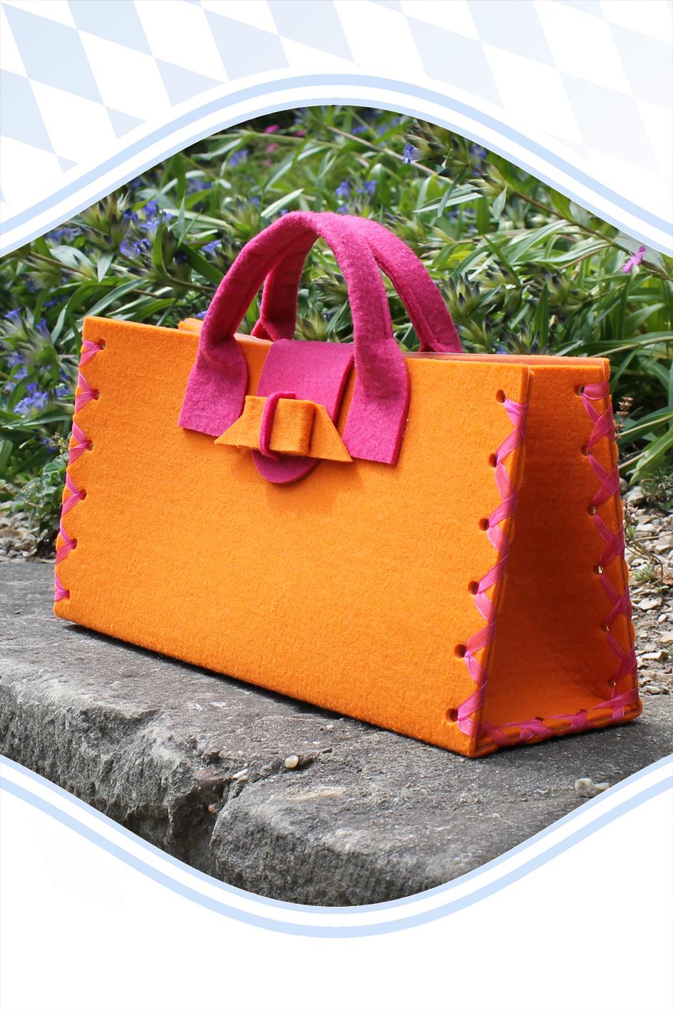 Super geräumige und handgearbeitete Trachtentasche aus Filz in der Trendfarbe orange.