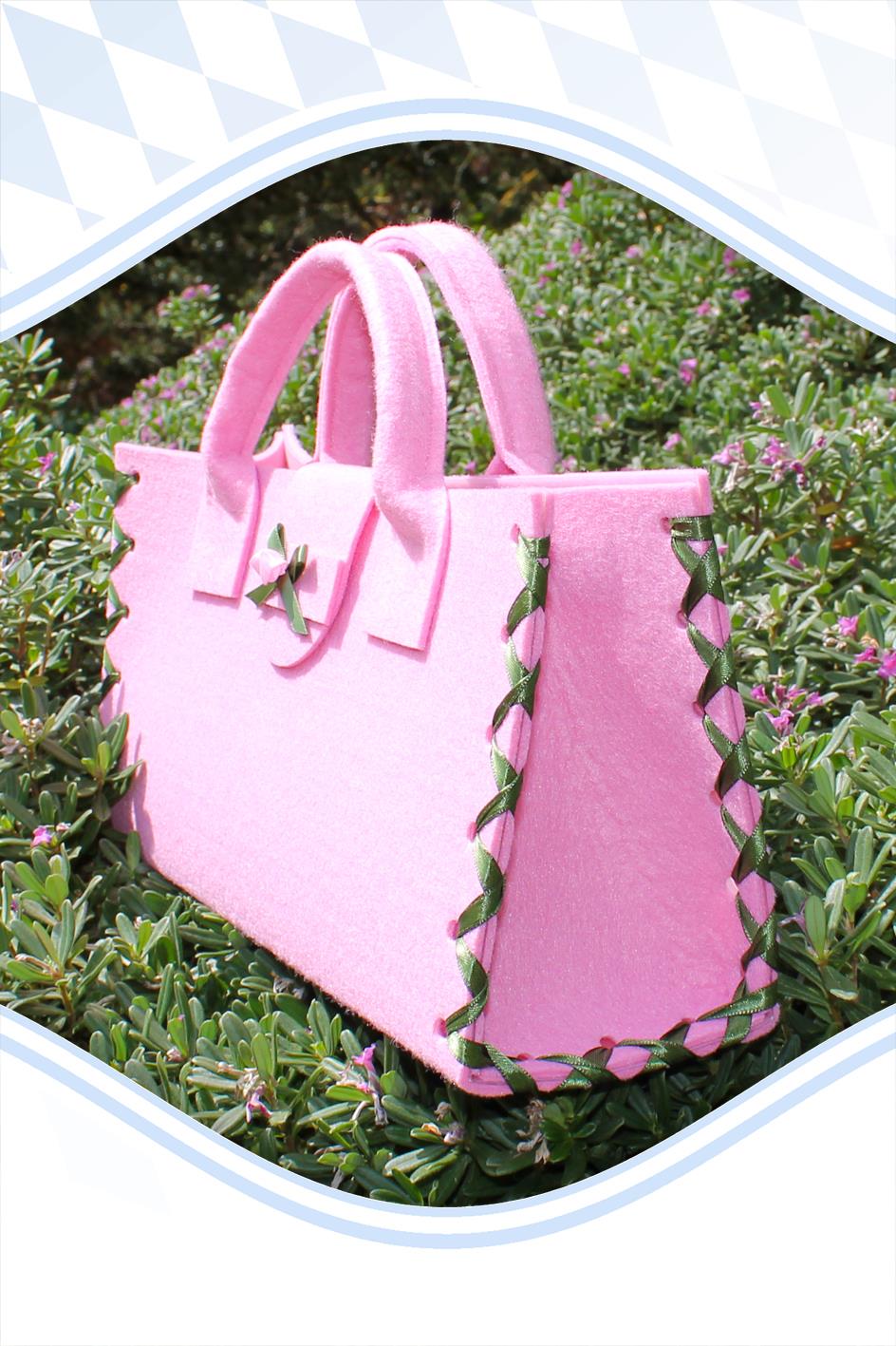 Super geräumige und handgearbeitete Trachtentasche aus Filz in der Trendfarbe rosa.