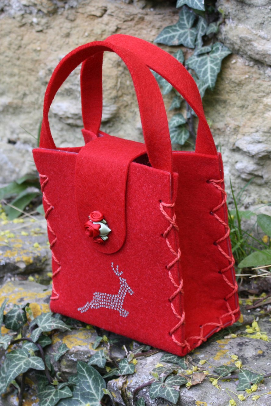 Handgearbeitete Filz Dirndltasche in der Farbe rot.