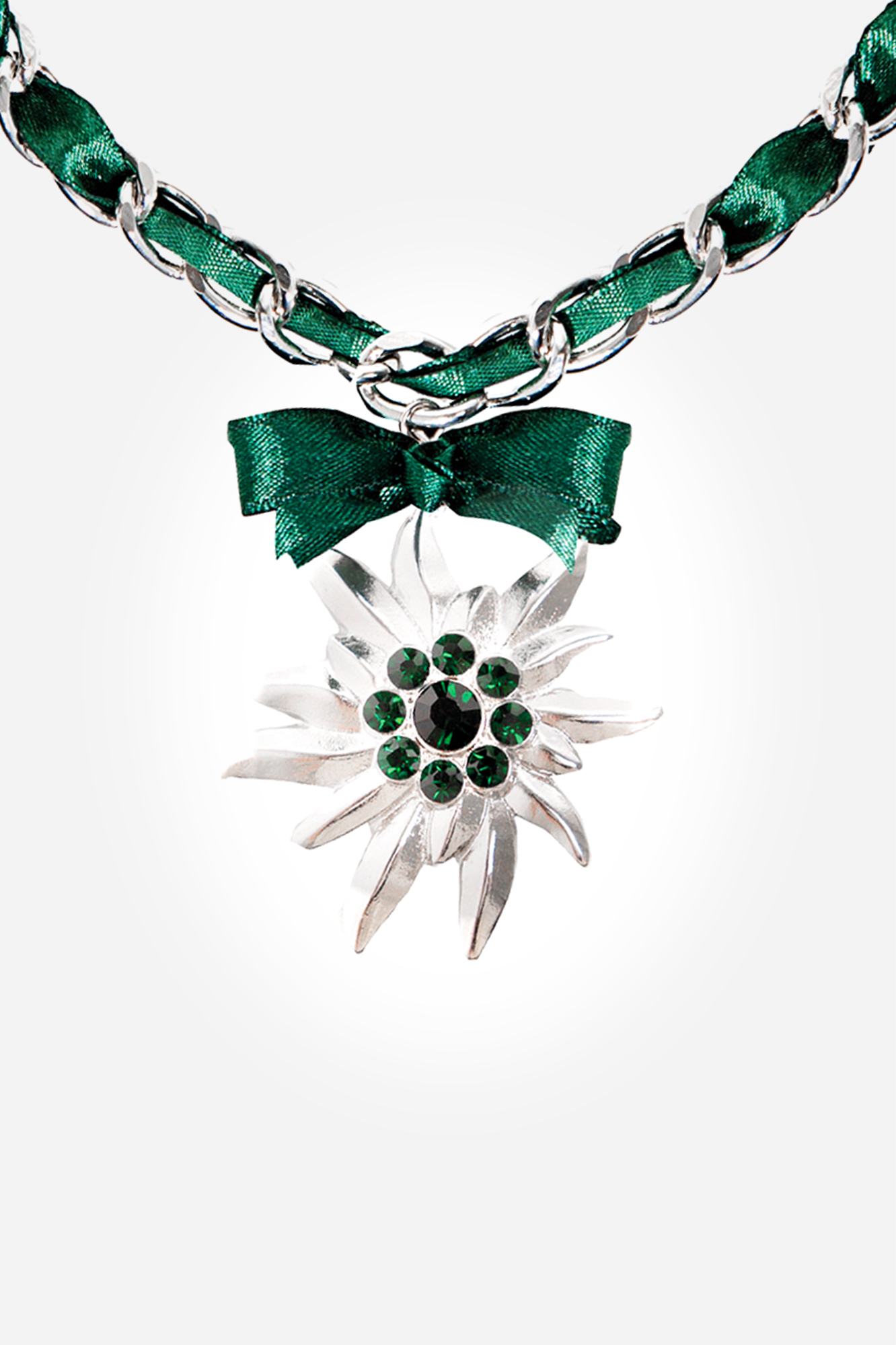 Wunderschöne Edelweiß-Trachtenkette in der Farbe grün