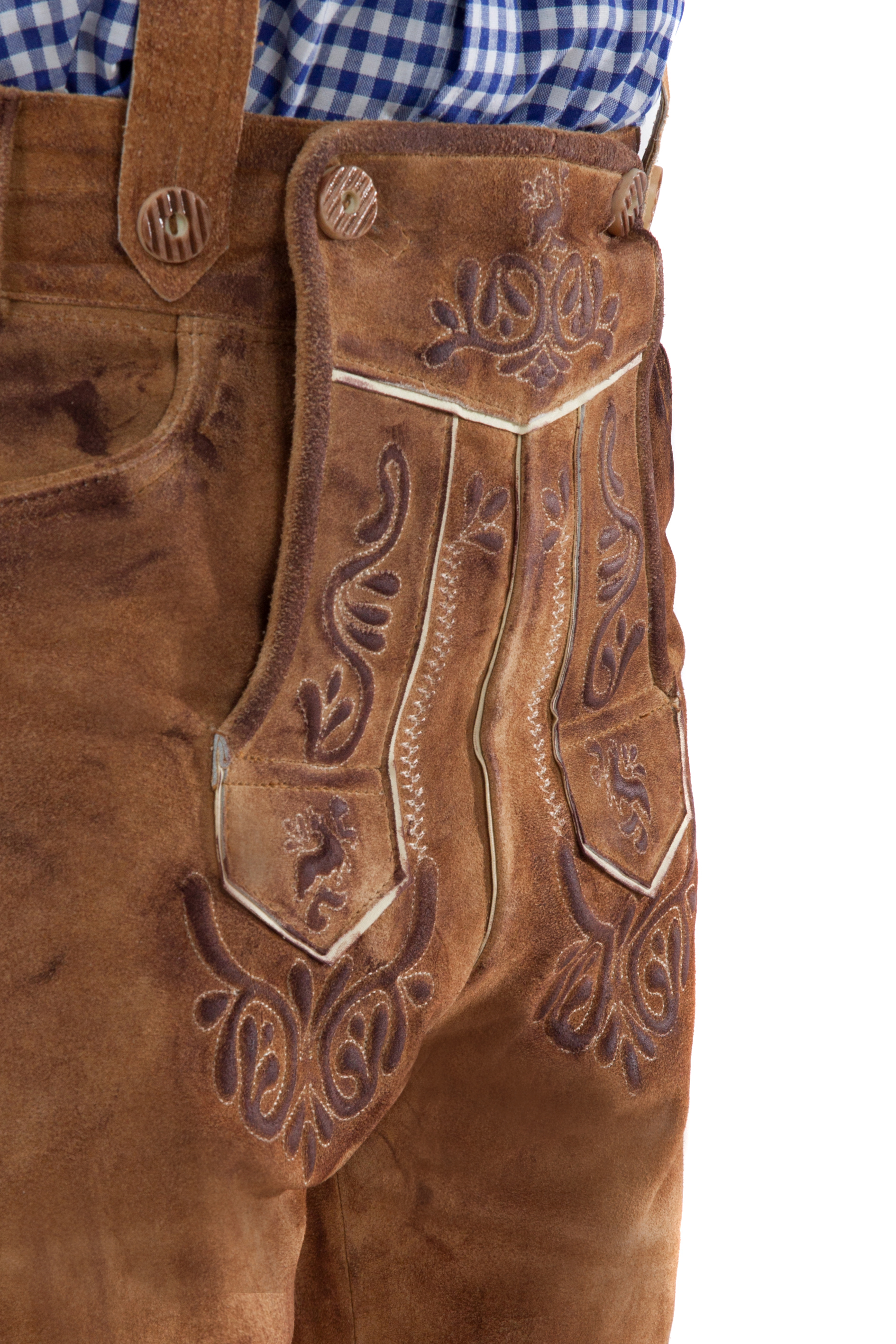 Das phänomenal weiche Leder dieser Trachtenlederhose schmiegt sich Ihrem Körper perfekt an. Neben der tollen Passform und der hervorragenden Lederqualität dieser Hose, sind vor allem die Stickerein in antiker Optik ein absolutes Highlight!