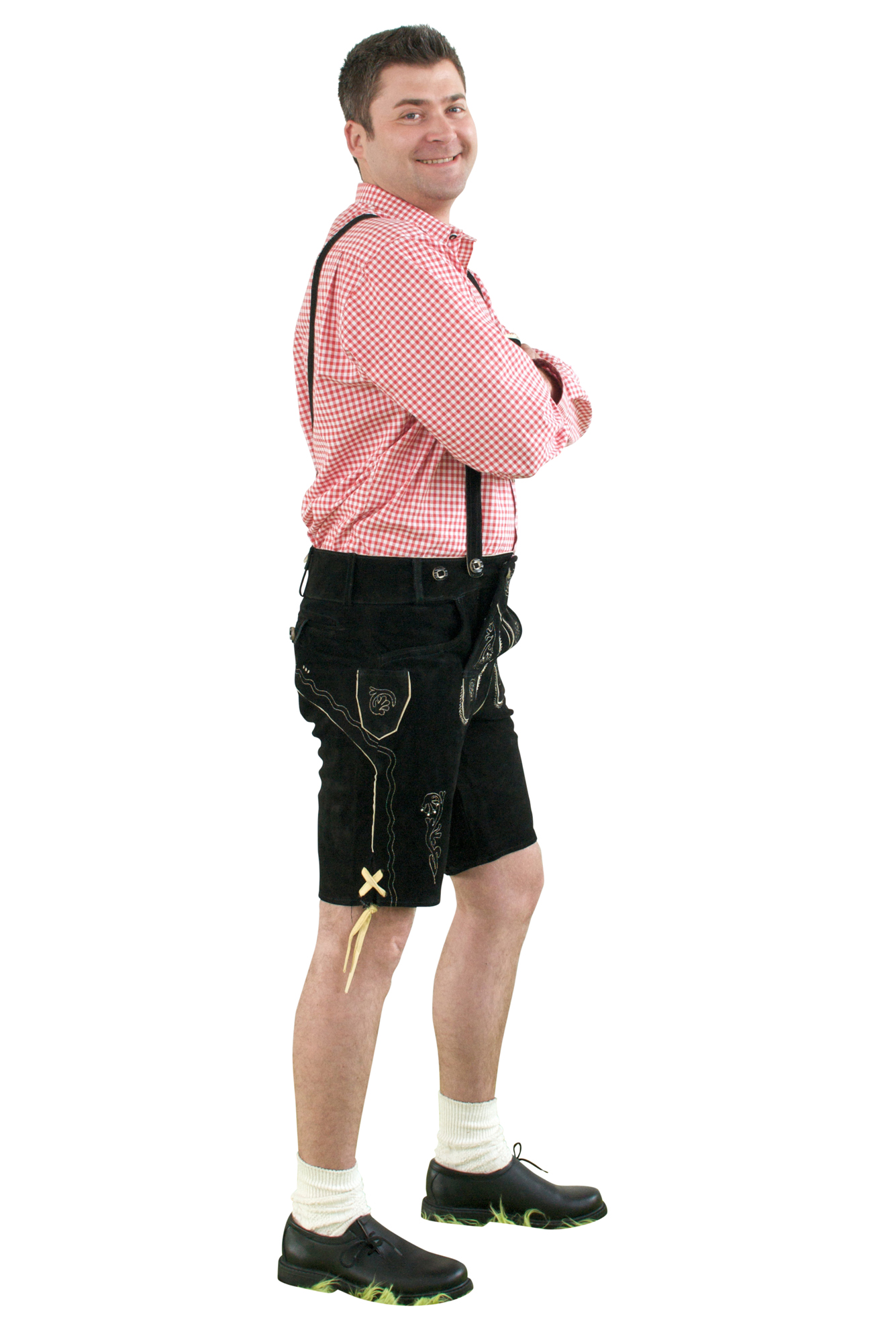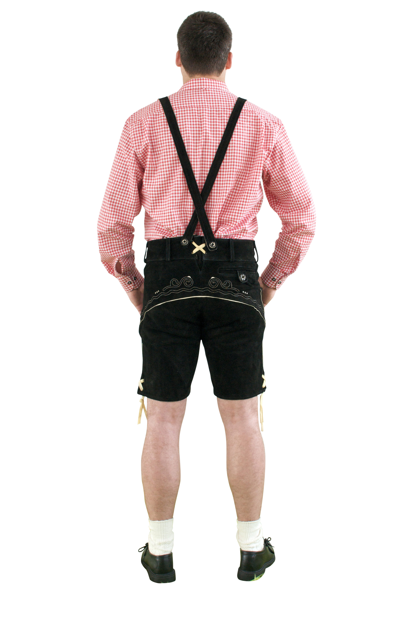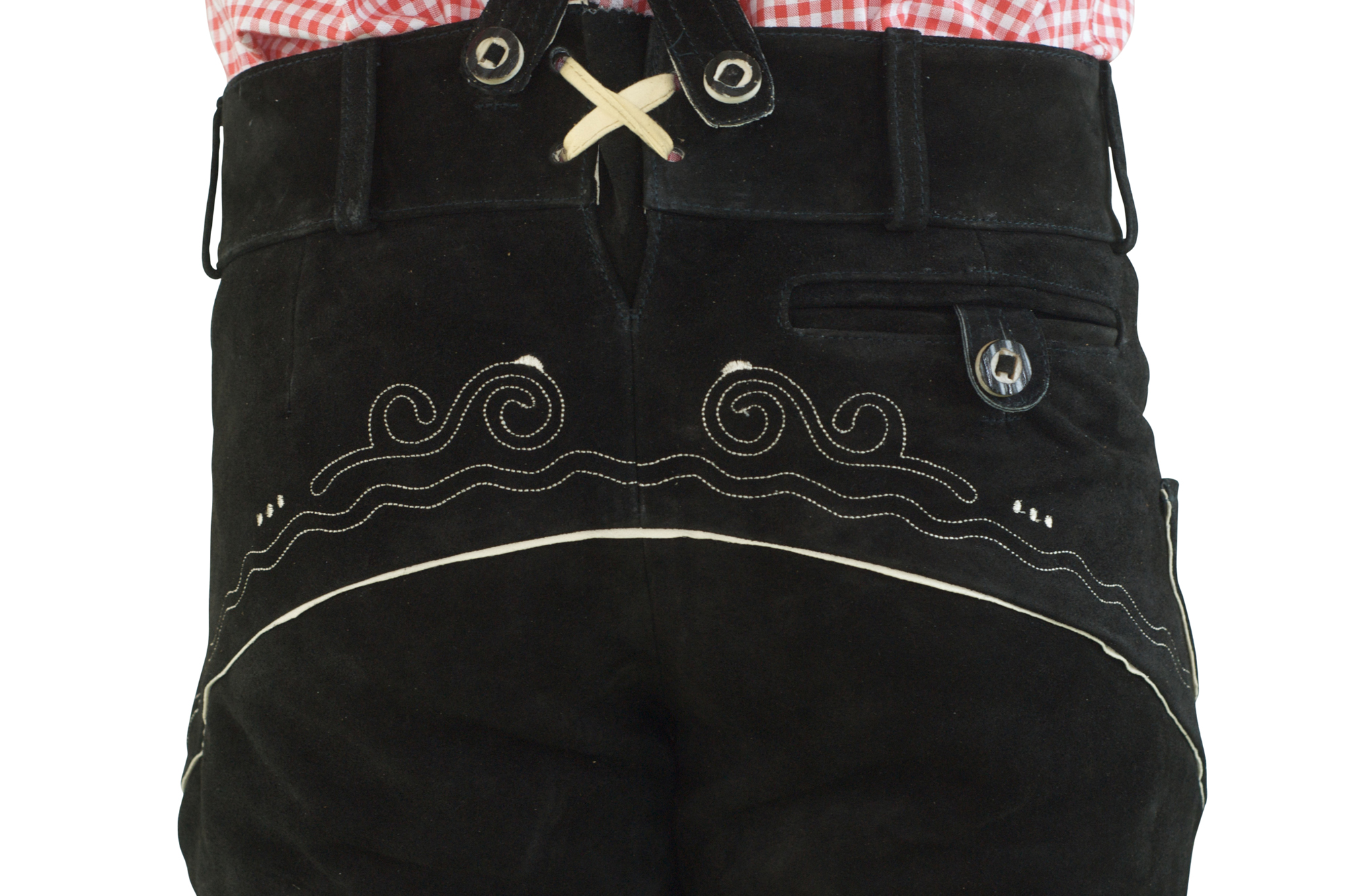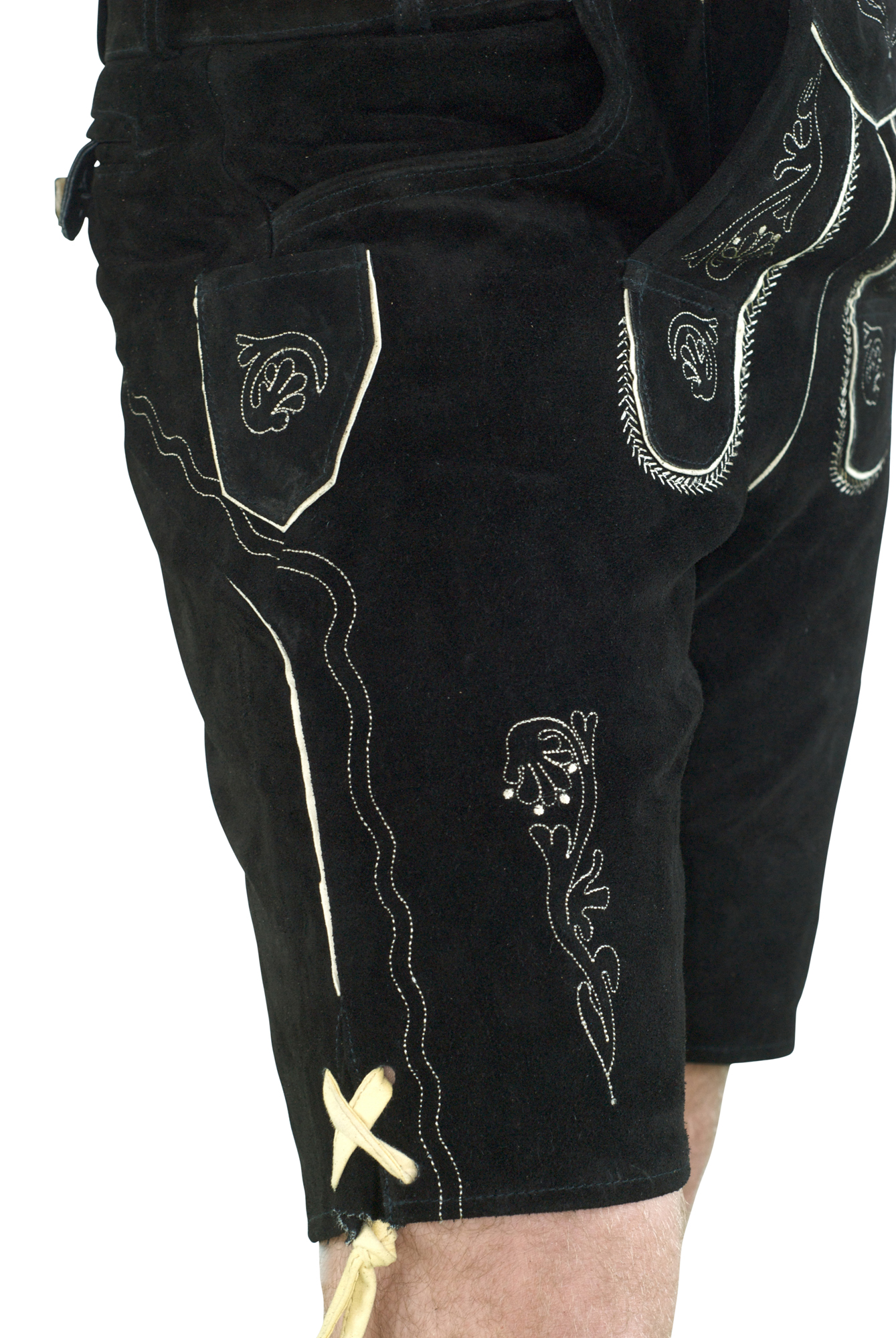 Diese hochwertige kurze Trachtenlederhose, in der Farbe schwarz, bietet hohen Tragekomfort und eine hervorragende Passform.