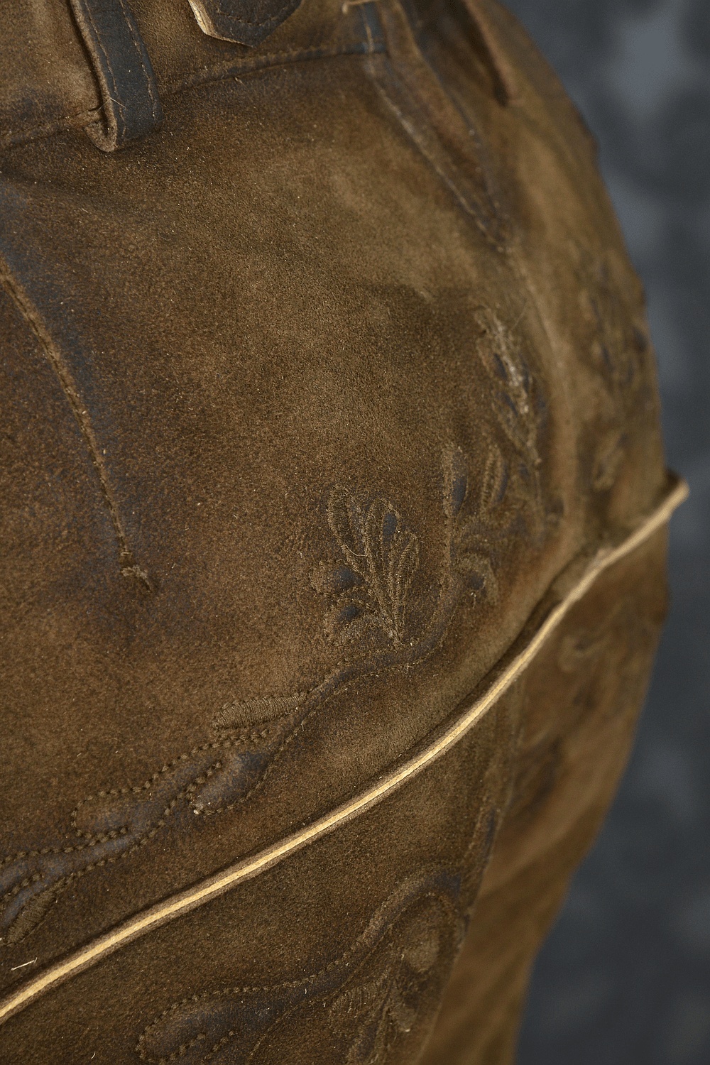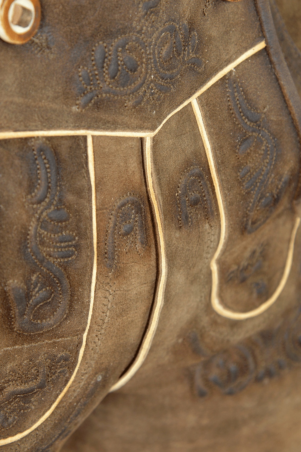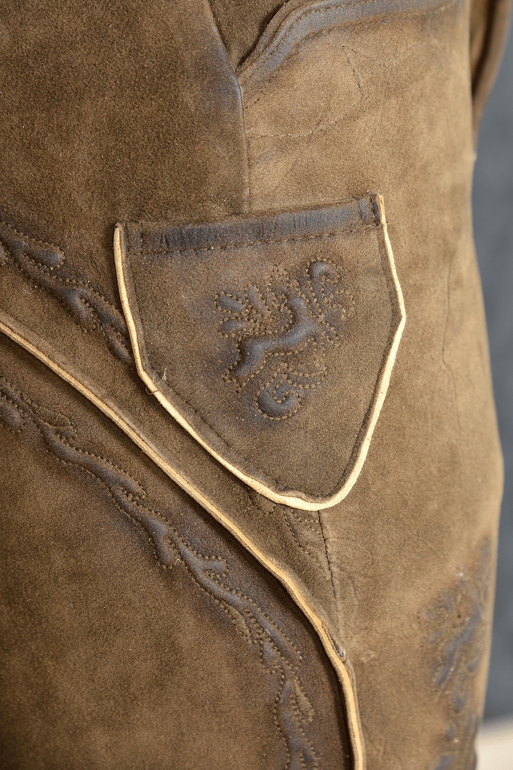 Die handgearbeitete, gewachste Stickerei im antiken Look macht diese Trachtenlederhose, in der Farbe "granit "zu einem wirklich ganz besonderen Liebhaber Stück!