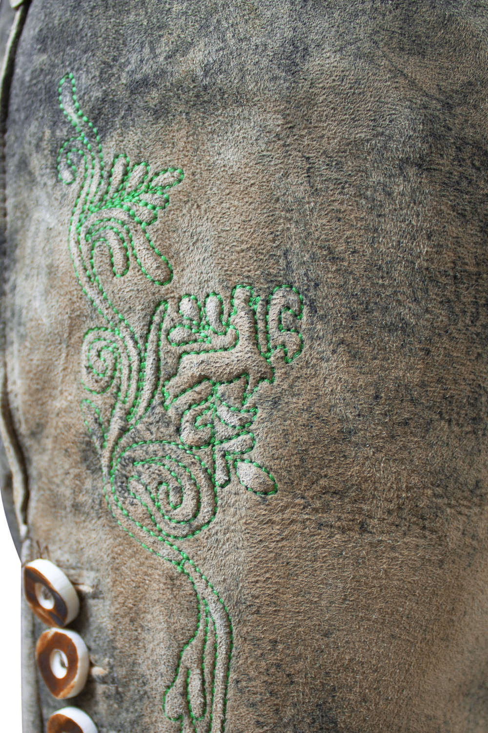 Die Trachtenknöpfe in Hirschhorn-optik an den Beinenden machen den bayerischen Trachten Look perfekt.