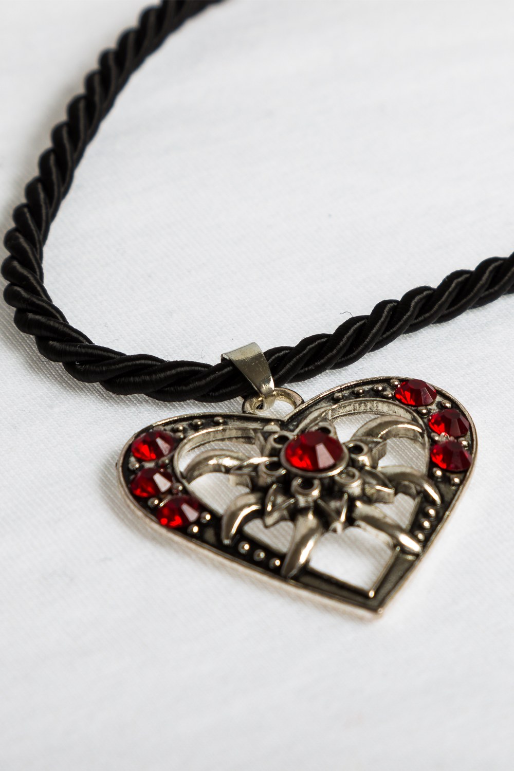 Made in Germany Halskette Edelweiß-Herz schwarz rot