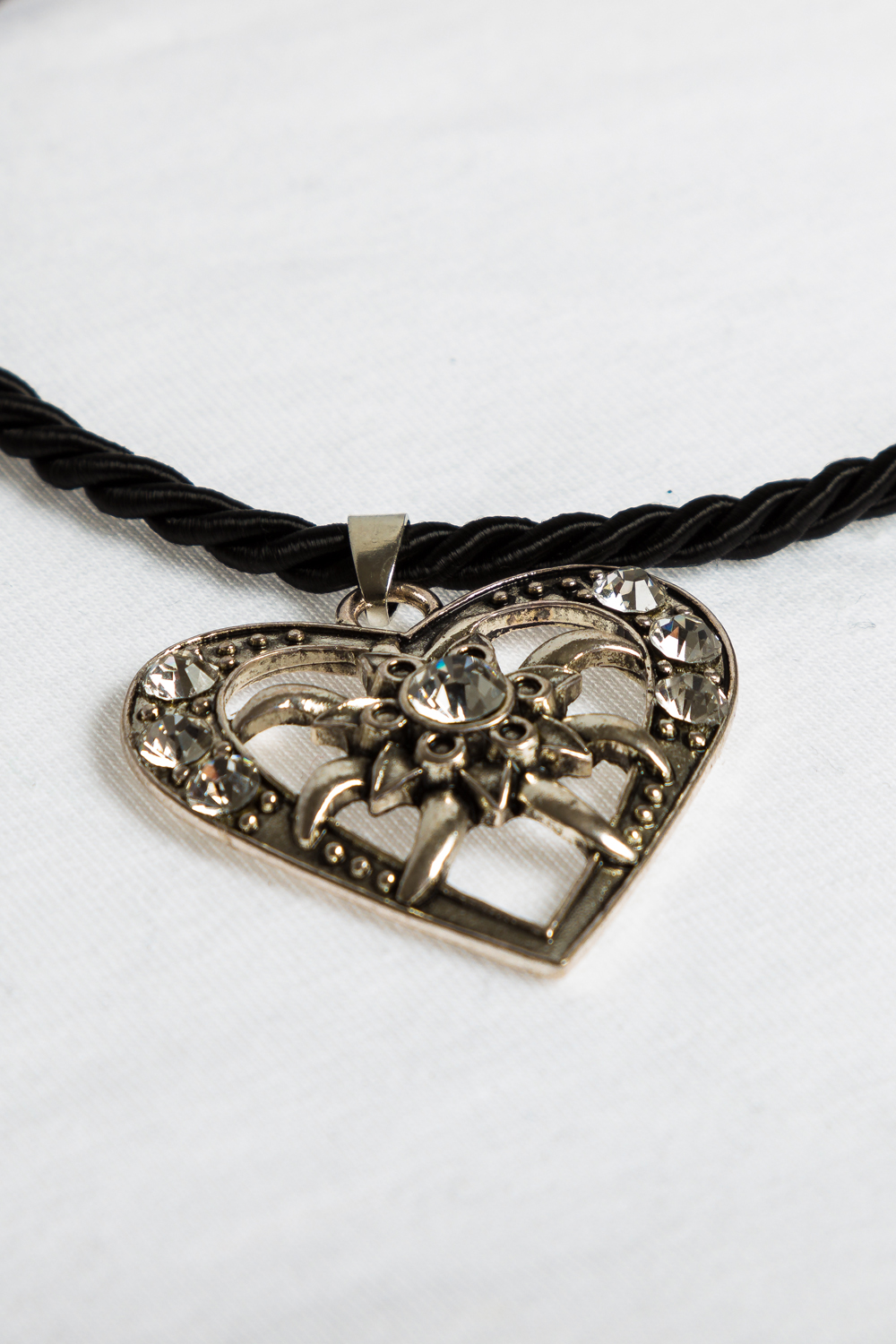 Made in Germany Halskette Edelweiß-Herz schwarz silber