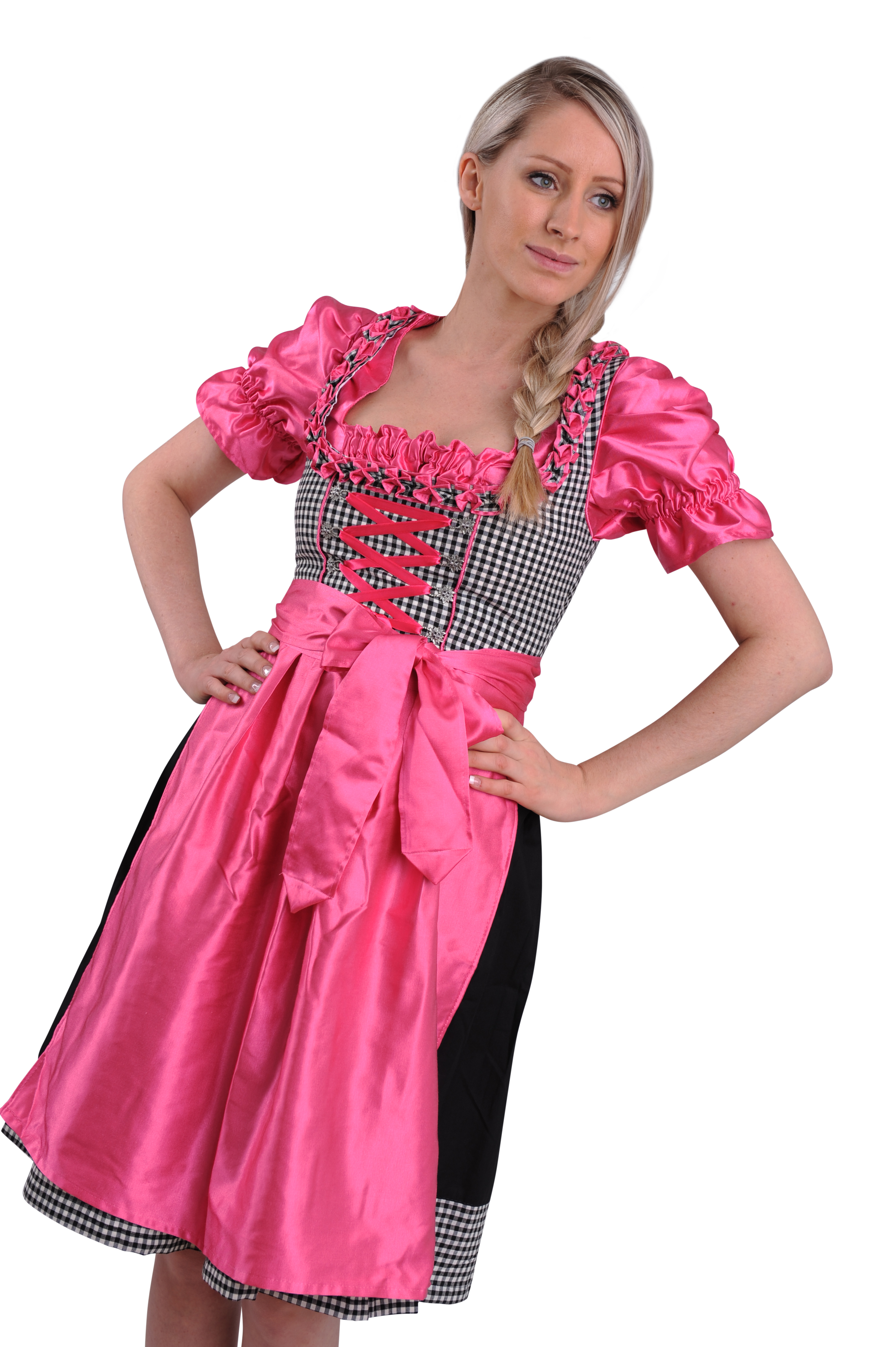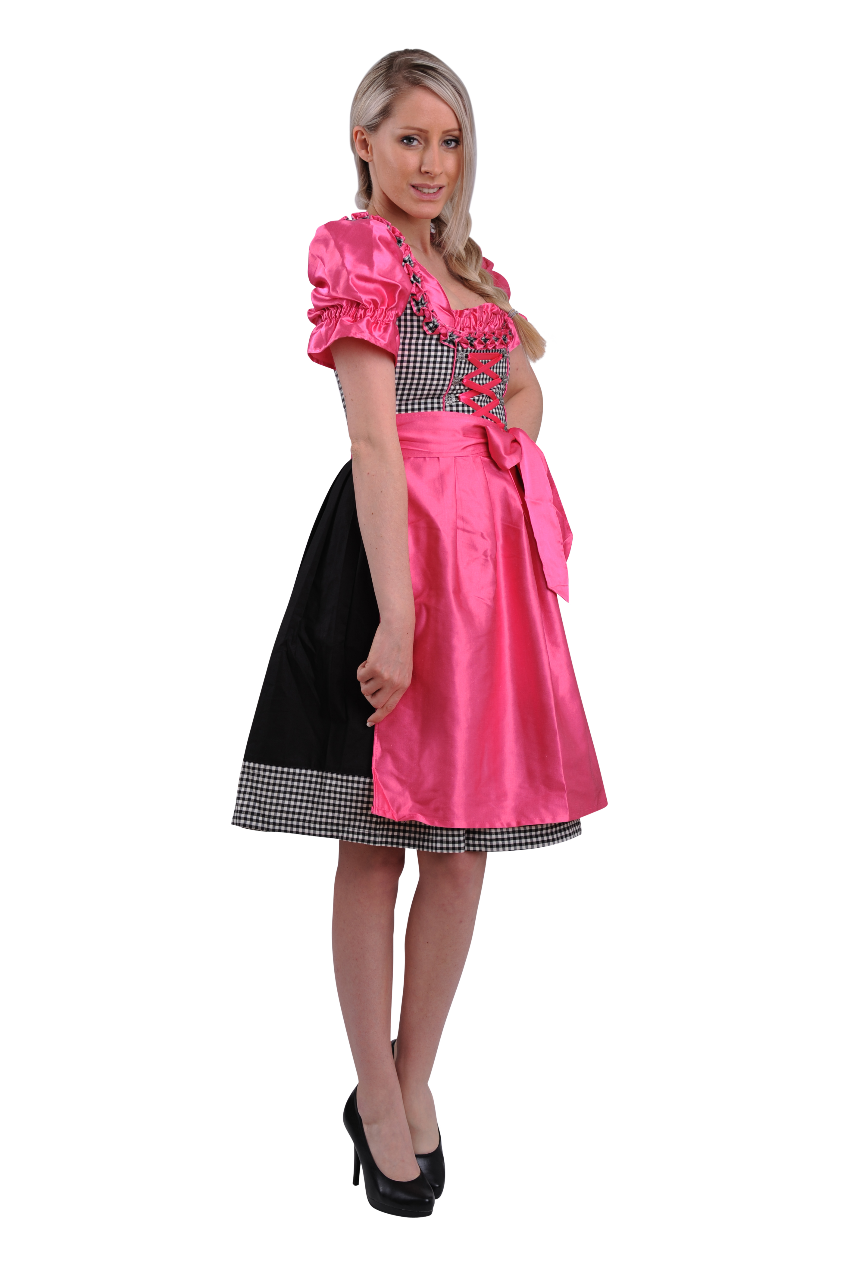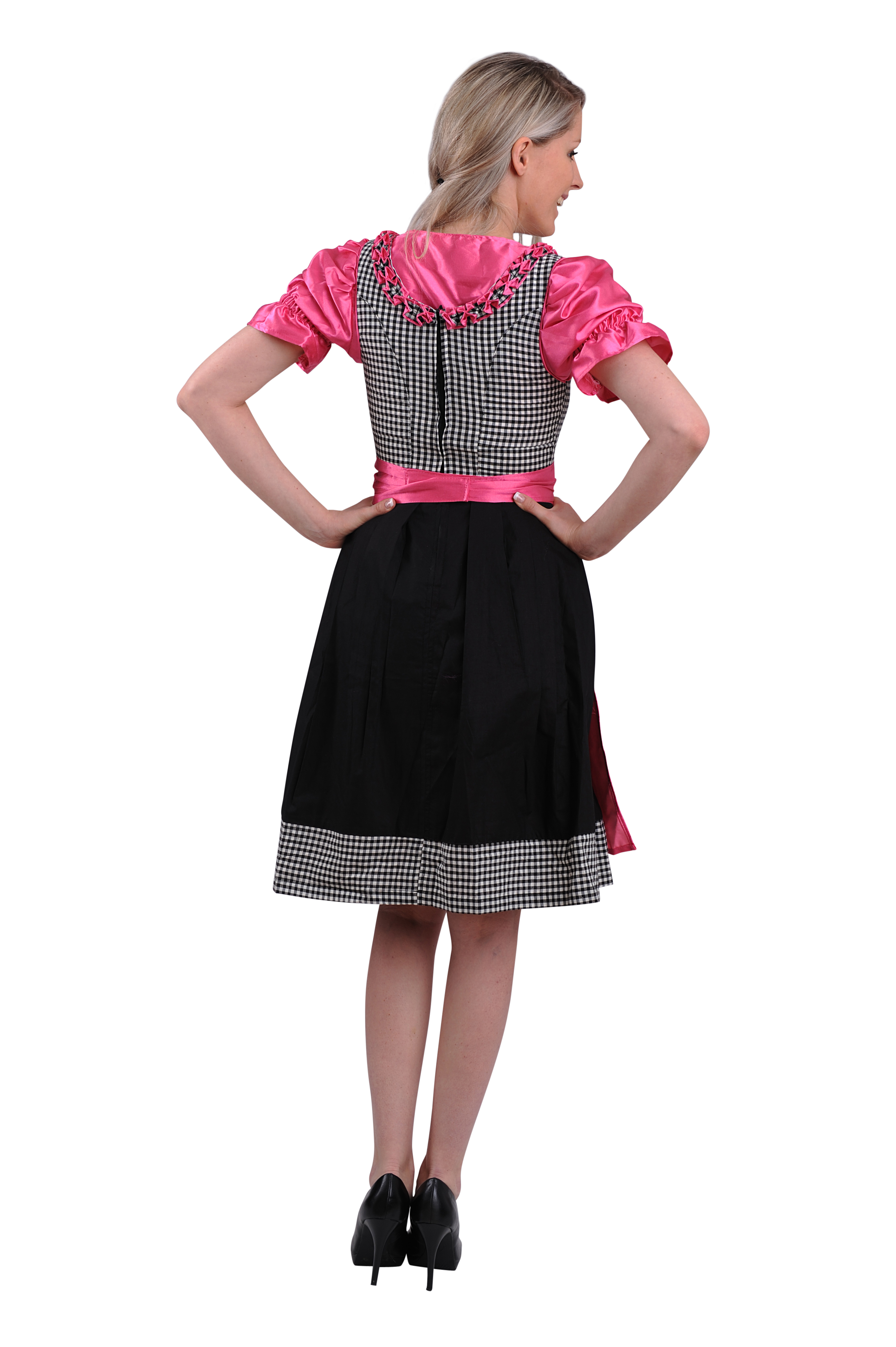 Dirndl 3-teilig in pink schwarz-kariert mit passender pinker Schürze und pinker Dirndlbluse