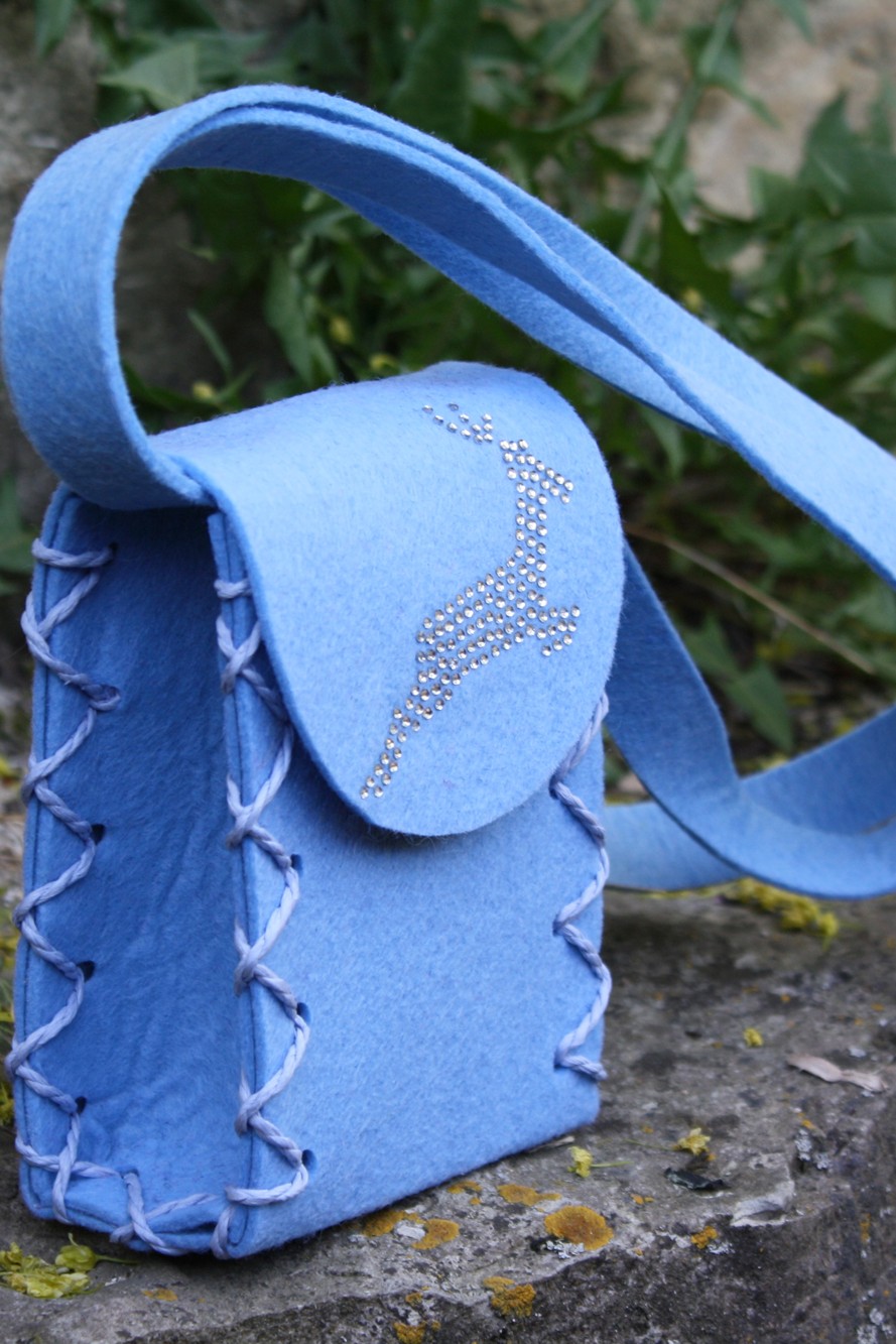 Mini Dirndltasche Filz hellblau Hirsch