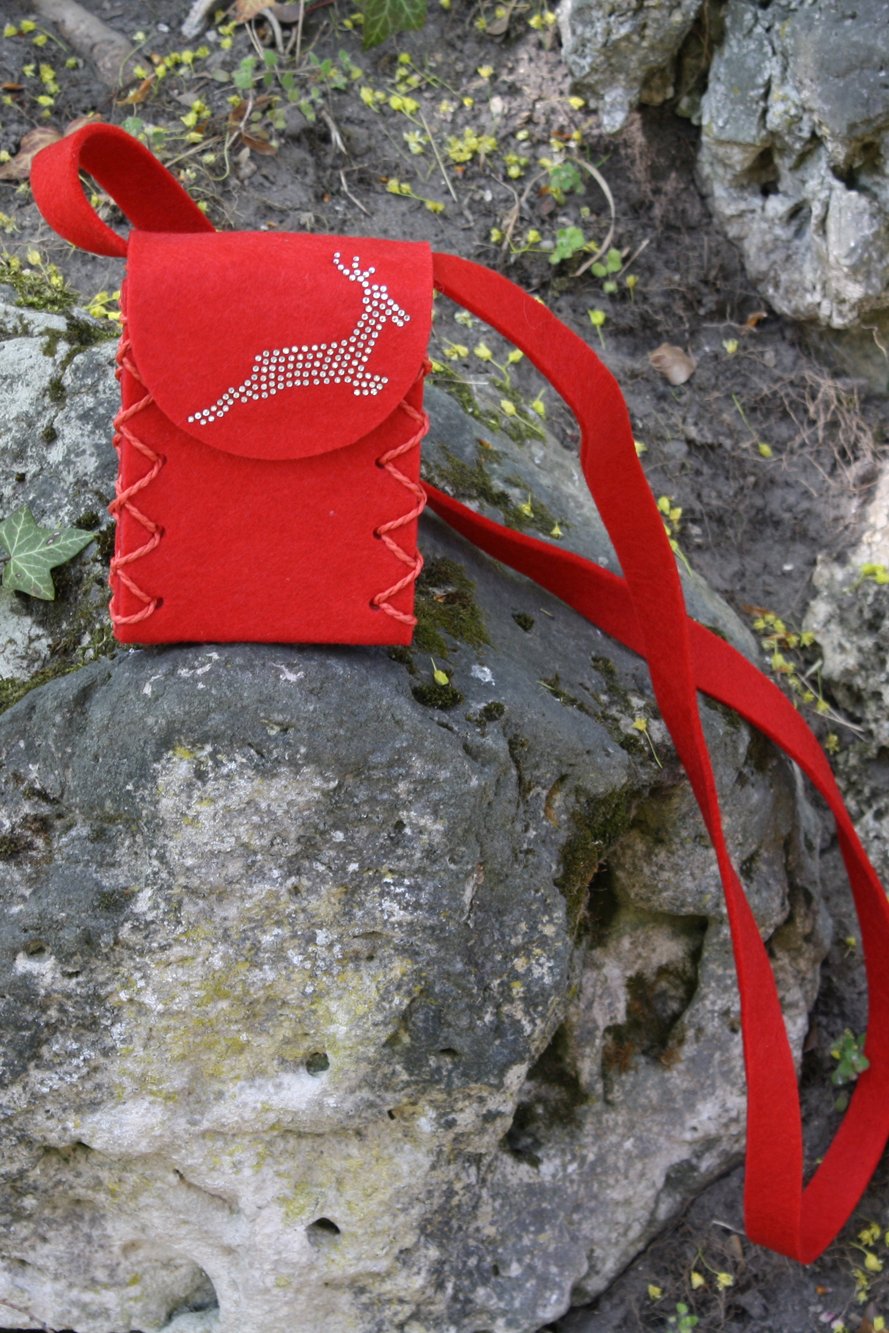 Mini Dirndltasche Filz rot Hirsch
