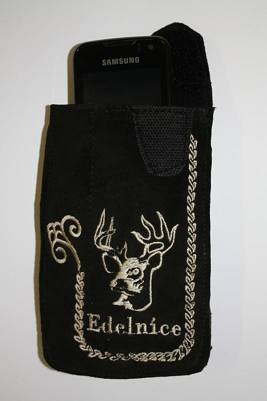 Mit dem hinteren, größenverstellbaren Klettverschluss kann die Handytasche problemlos an Gürtel oder Dirndlschürzen festgemacht werden.