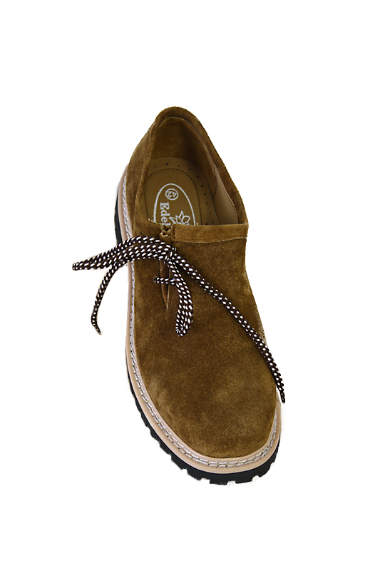 Hochwertige Trachten Harferlschuhe aus Kalbsleder in der Farbe braun mit Ziegenleder Innensohle