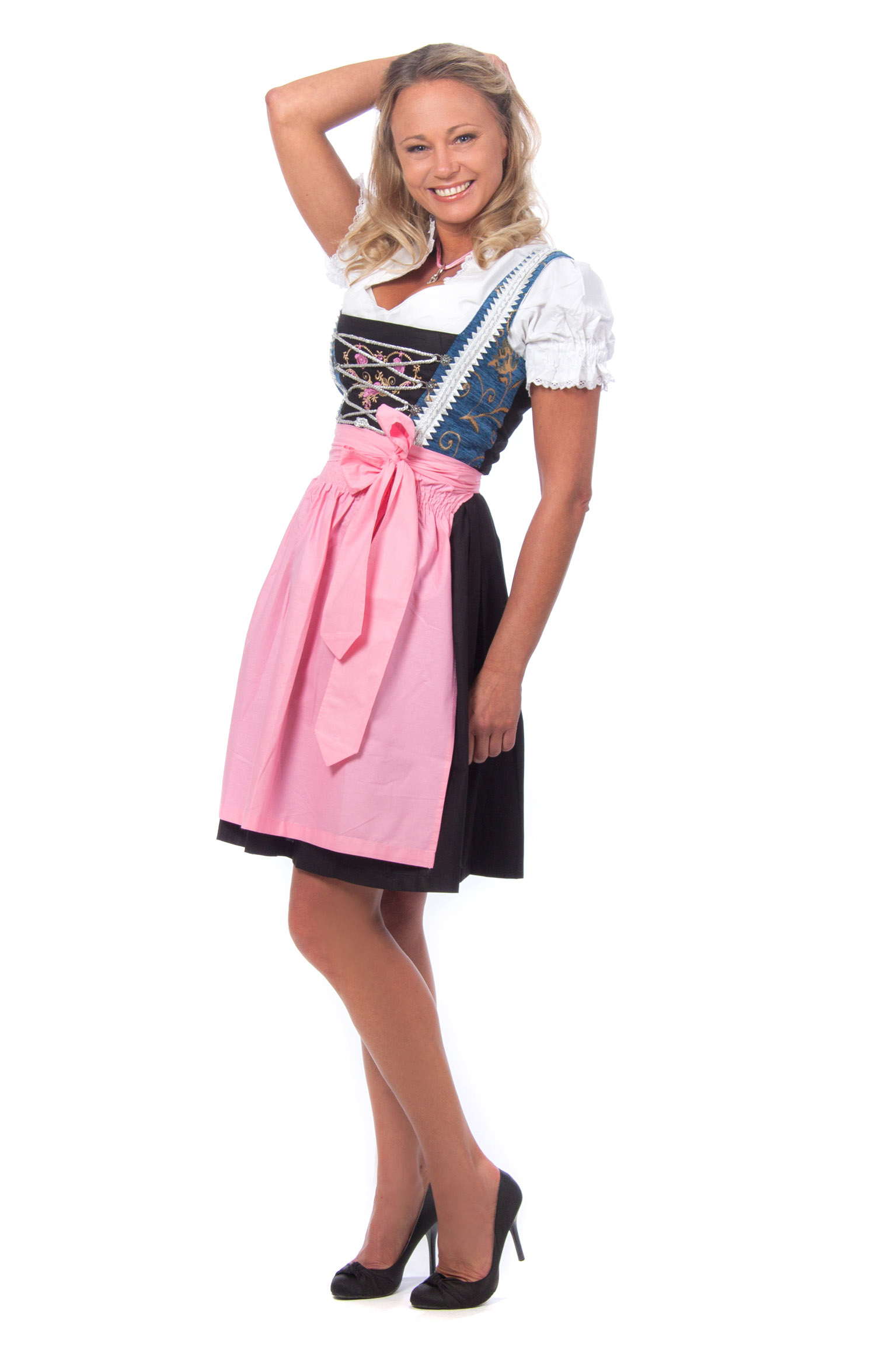 Extravagantes 3 teiliges Dirndl mit rosa Dirndlschürze und weißer Dirndlbluse