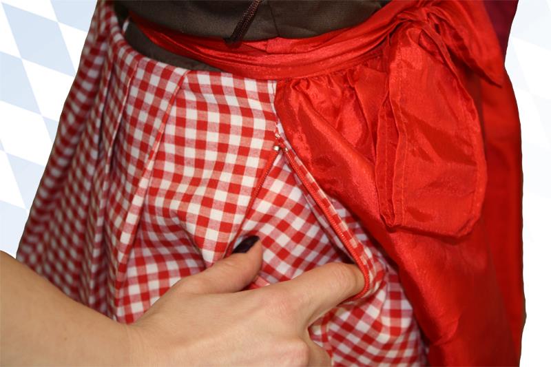 Sehr praktisch: im Dirndlrock befindet sich eine Tasche, welche mit einem Reisverschluss geschlossen wird