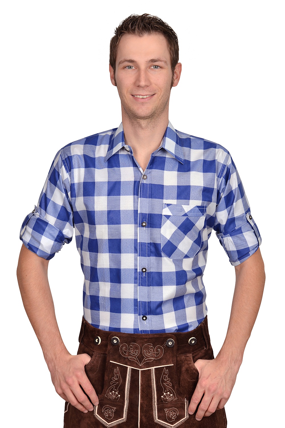 Trachtenhemd blau weiß kariert mit stilechten Trachtenknöpfen.