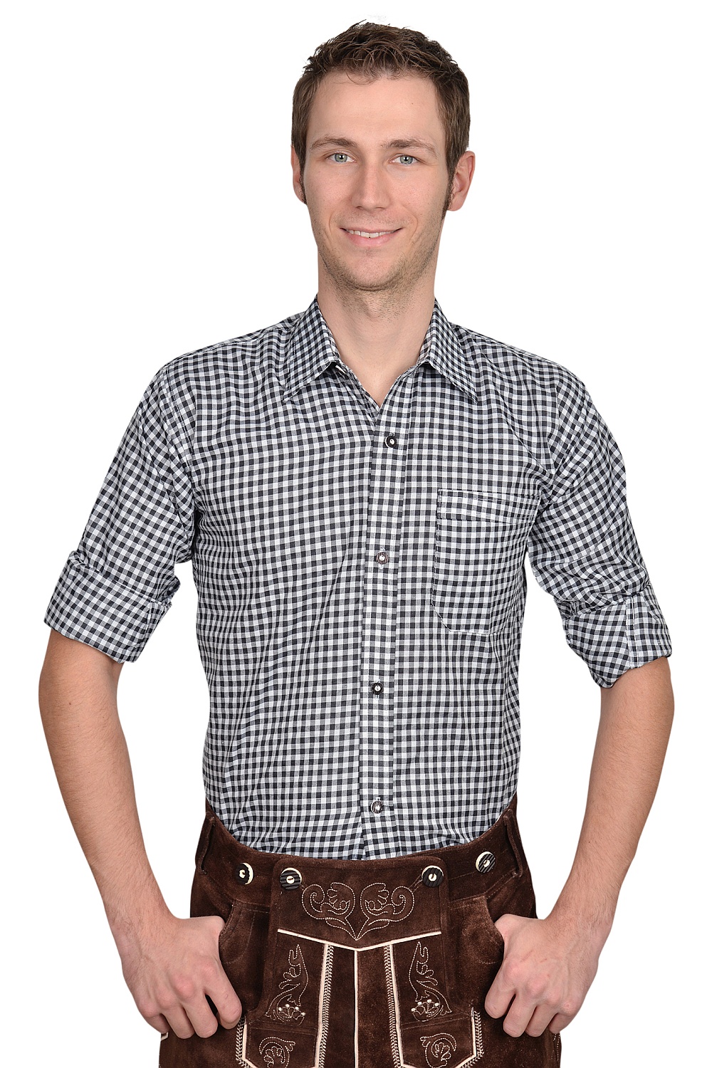 Trachtenhemd schwarz weiß kariert mit stilechten Trachtenknöpfen.