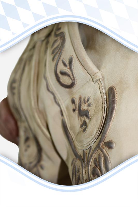 Die handgearbeitete, gewachste Stickerei im antiken Look macht diese Trachtenlederhose, in der Farbe Tabak zu einem wirklich besonderen Stück!