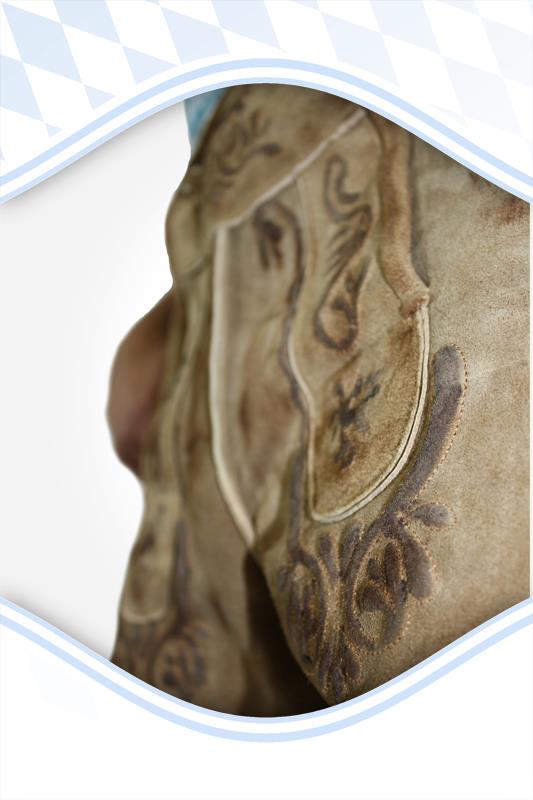 Die handgearbeitete, gewachste Stickerei im antiken Look macht diese Trachtenlederhose, in der Farbe Tabak zu einem wirklich besonderen Stück!