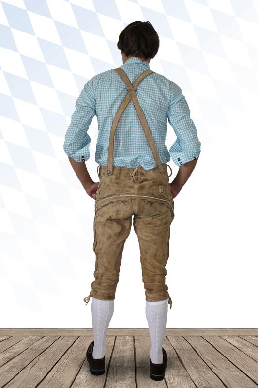Durch Hirschlederbänder hinten am Bund und an den Beinenden können Sie die Lederhose individuell auf ihren Körper anpassen.